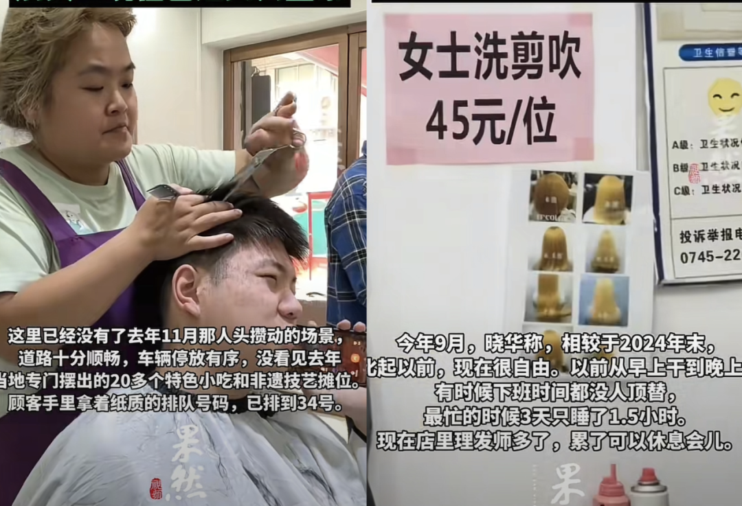 晓华爆红后带来的流量冲击是弘大的。她剃头店一下子涌入大批主顾,最忙的时候她三天只可睡了1.5个小时。也因为她的爆火,当地文旅部门赶紧行动,连夜在她的店铺独揽修路,摆出20多个小吃摊,以应付激增的东说念主流。